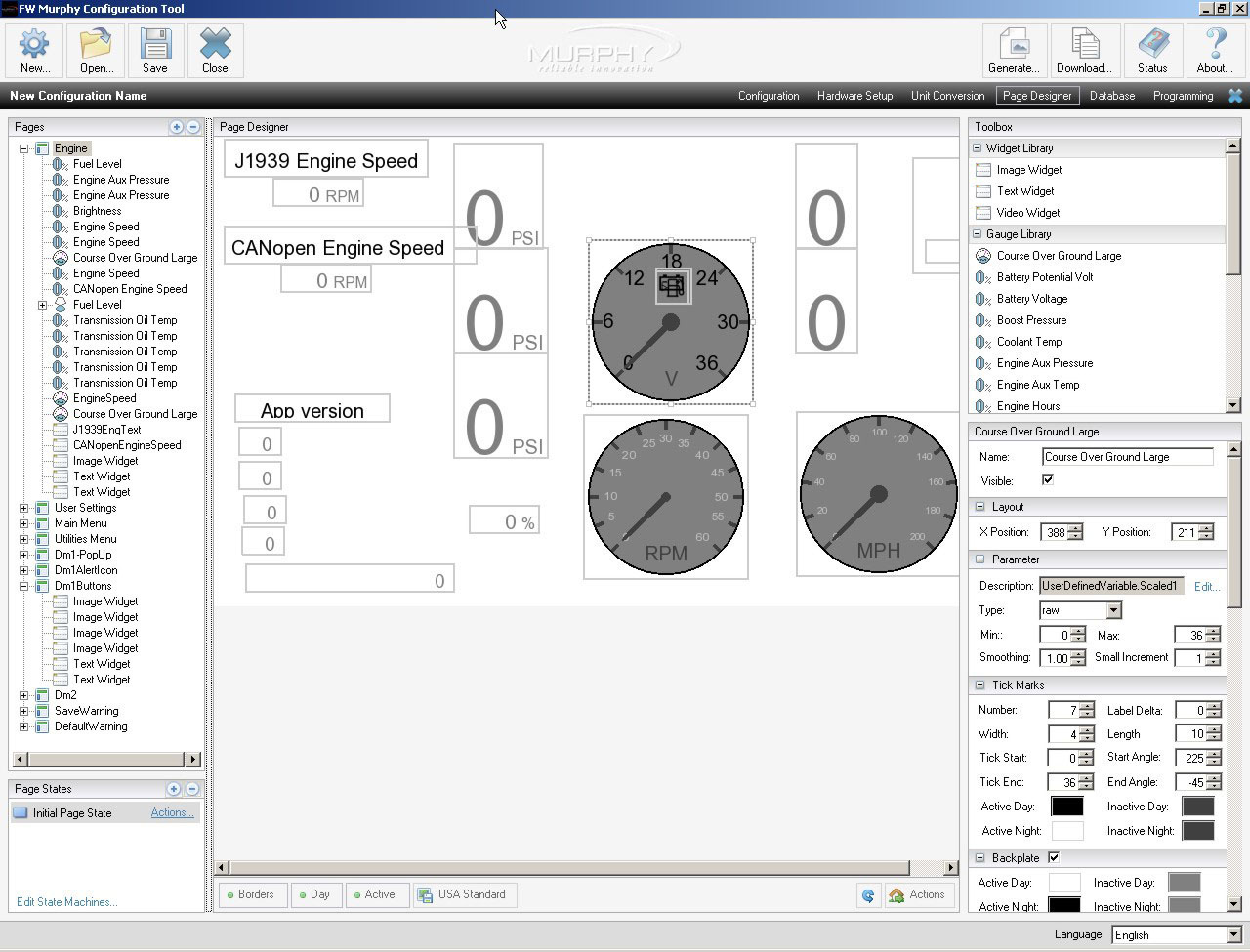 Murphy's PowerVision Configuration Studio gives you total control over your vehicle and machine Human-Machine Interface and CAN-based control system. PowerVision's visual development environment allows you to build a high quality, multi-layered and multi-language HMI.